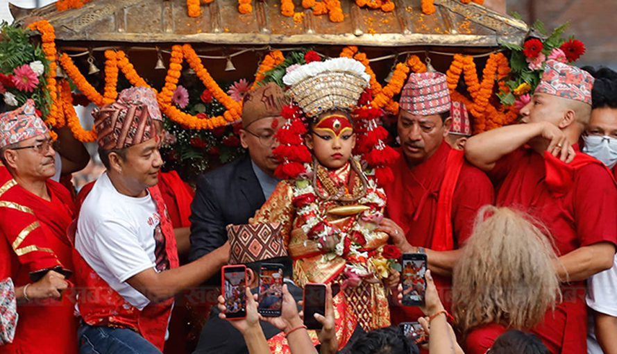 इन्द्रजात्रा हेर्न राष्ट्रपति हिँडेरै बसन्तपुर पुगे (फोटो फिचर)