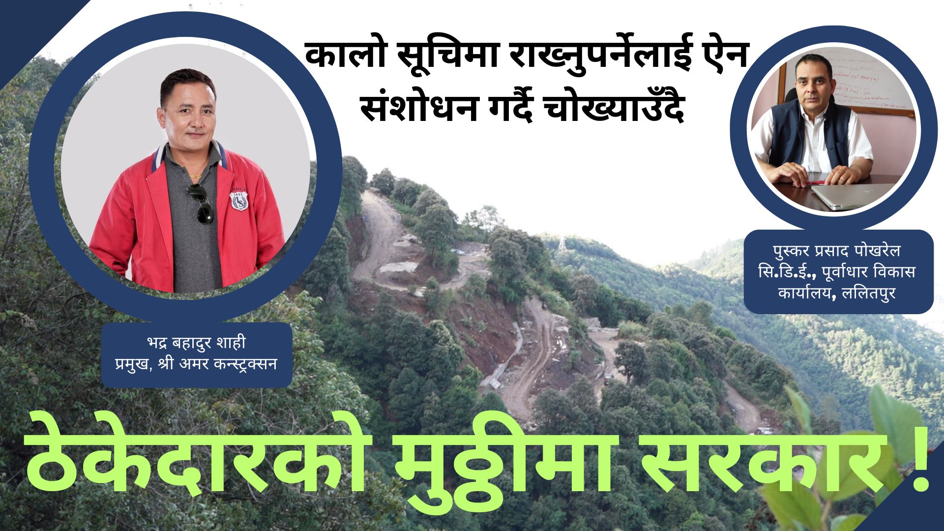 ‘बन्दैन सतुंगल, मातातीर्थ, देउराली–कुलेखानी सडक’ ठेकेदारको मनोमानी, निरीह प्रशासन, ठेकेदार जोगाउन सरकार नै अग्रसर (भिडियो रिर्पोटसहित)